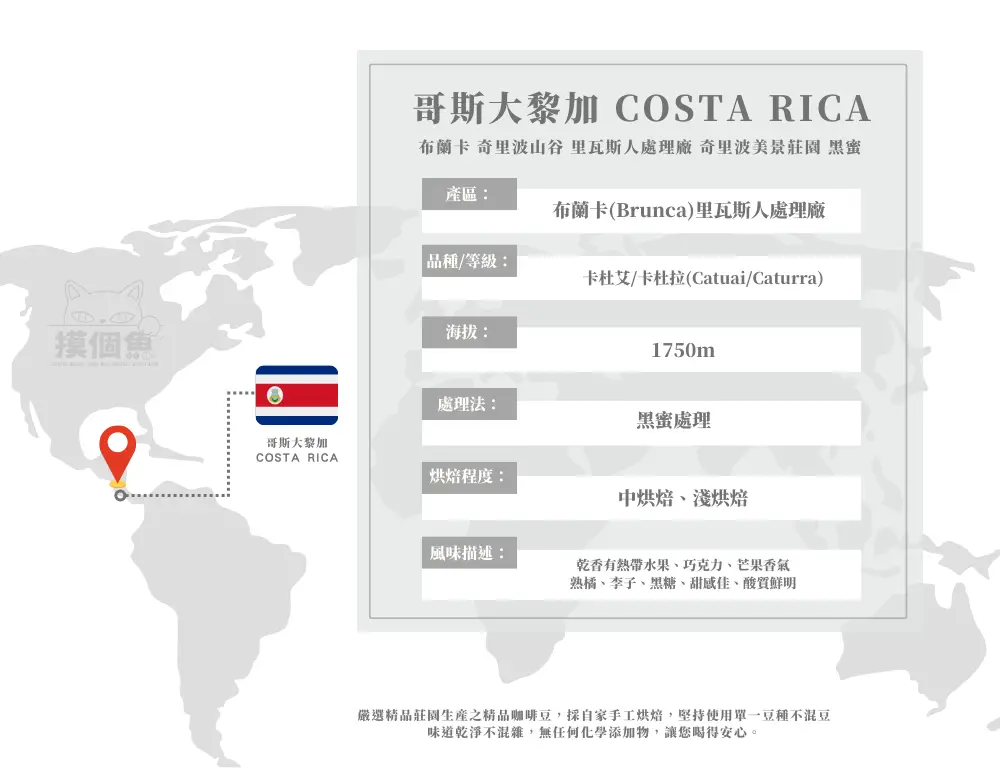 哥斯大黎加・布蘭卡產區・里瓦斯人處理廠奇里波美景莊園・黑蜜處理