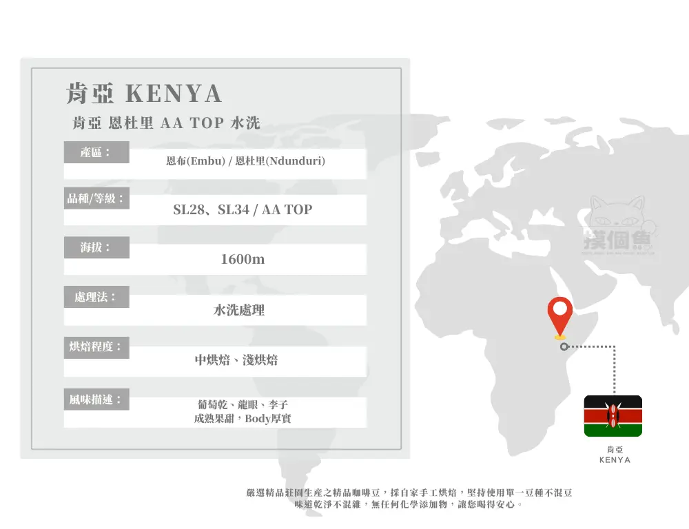 相較於基里尼亞加或涅里常見的奔放酸質,恩布產區的咖啡更偏向 成熟、圓潤、厚度扎實 的風格,保有肯亞水洗的乾淨輪廓,同時在口感上更顯沉穩。